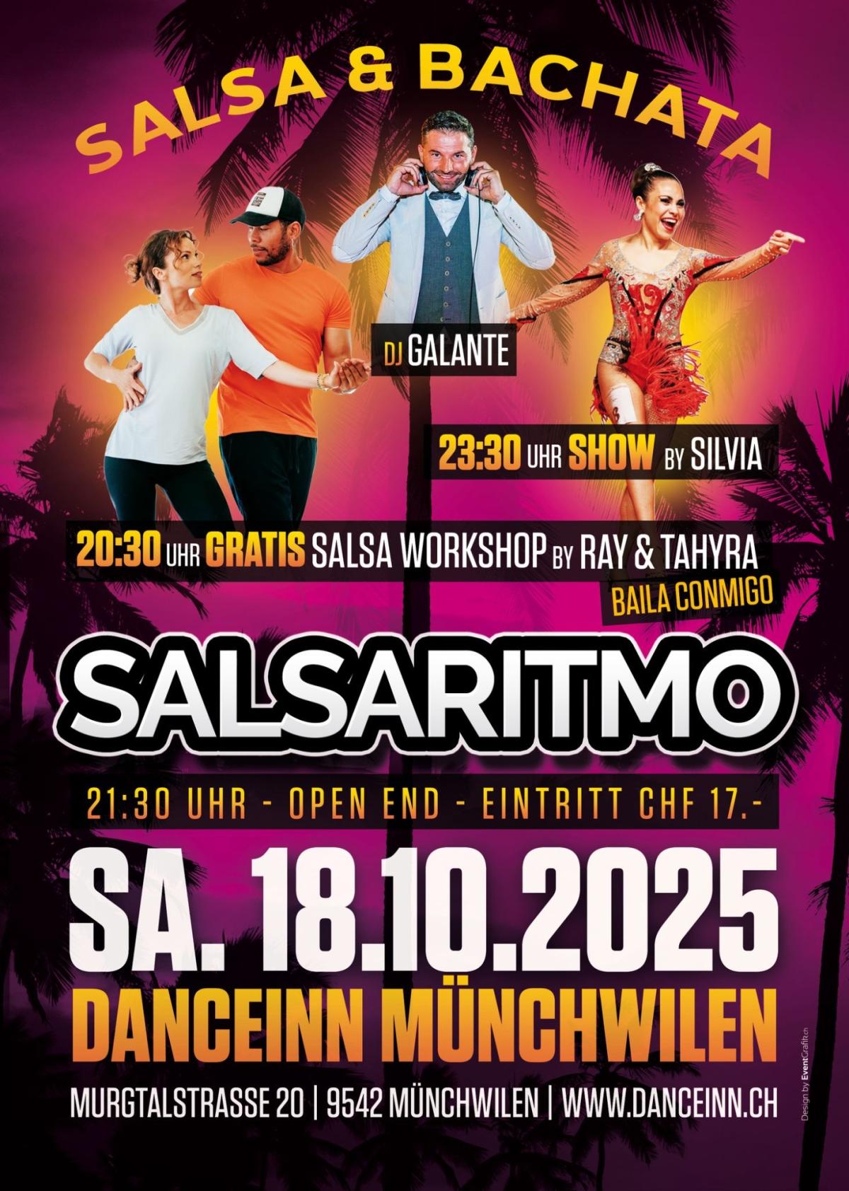 Yeahhh... SALSARITMO! Die von Tänzer/innen beliebte SALSA-BACHATA-KIZOMBA Party der Ostschweiz im wunderschönen Lokal Dance Inn.